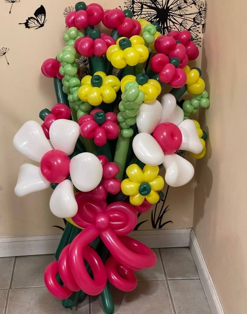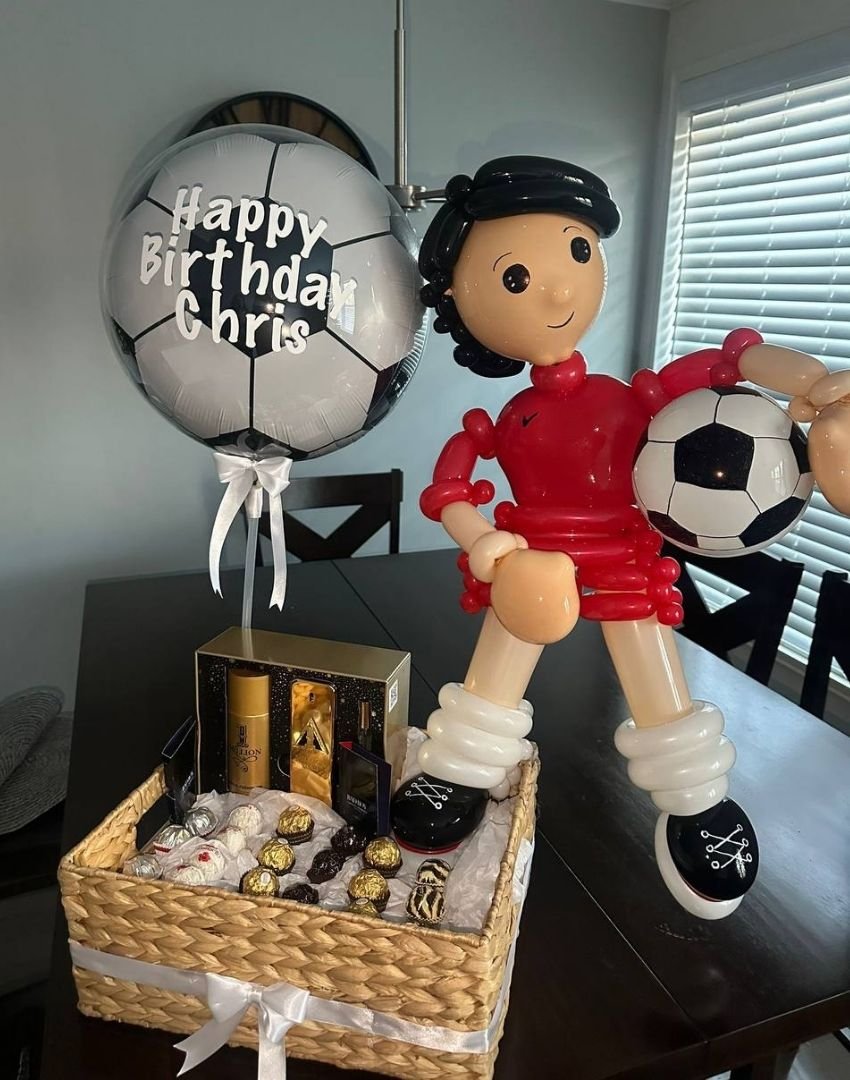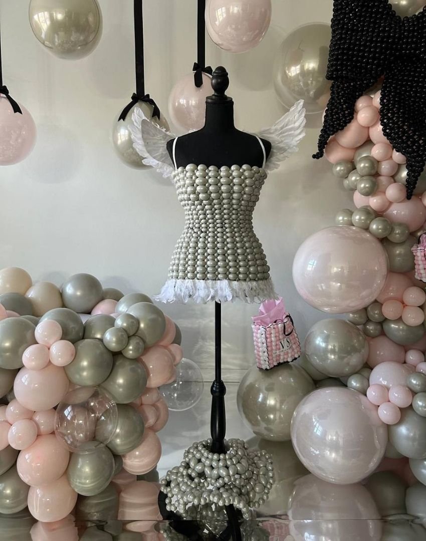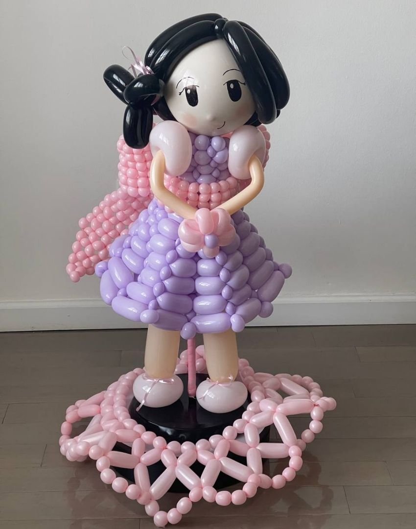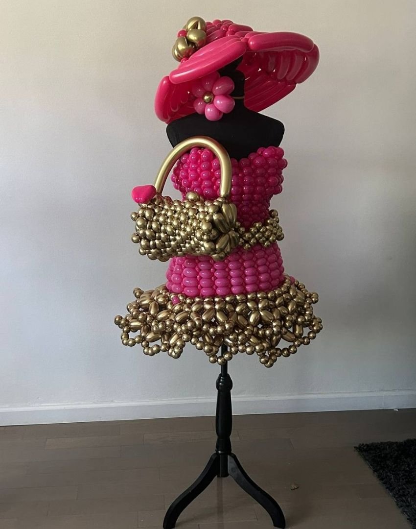 Signature artistic pieces such as balloon dresses and creative sculptures designed to bring a distinctive visual element to events.